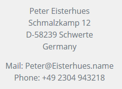 Die Internetseiten meiner Homepage enthalten eventuell Verweise zu anderen, externen Internetseiten. Für den Inhalt der "gelinkten" Seiten trägt der Betreiber dieser Webseite - also ich - keine Verantwortung und ich distanziere mich vorsichtshalber von allem, was man so im Internet findet.